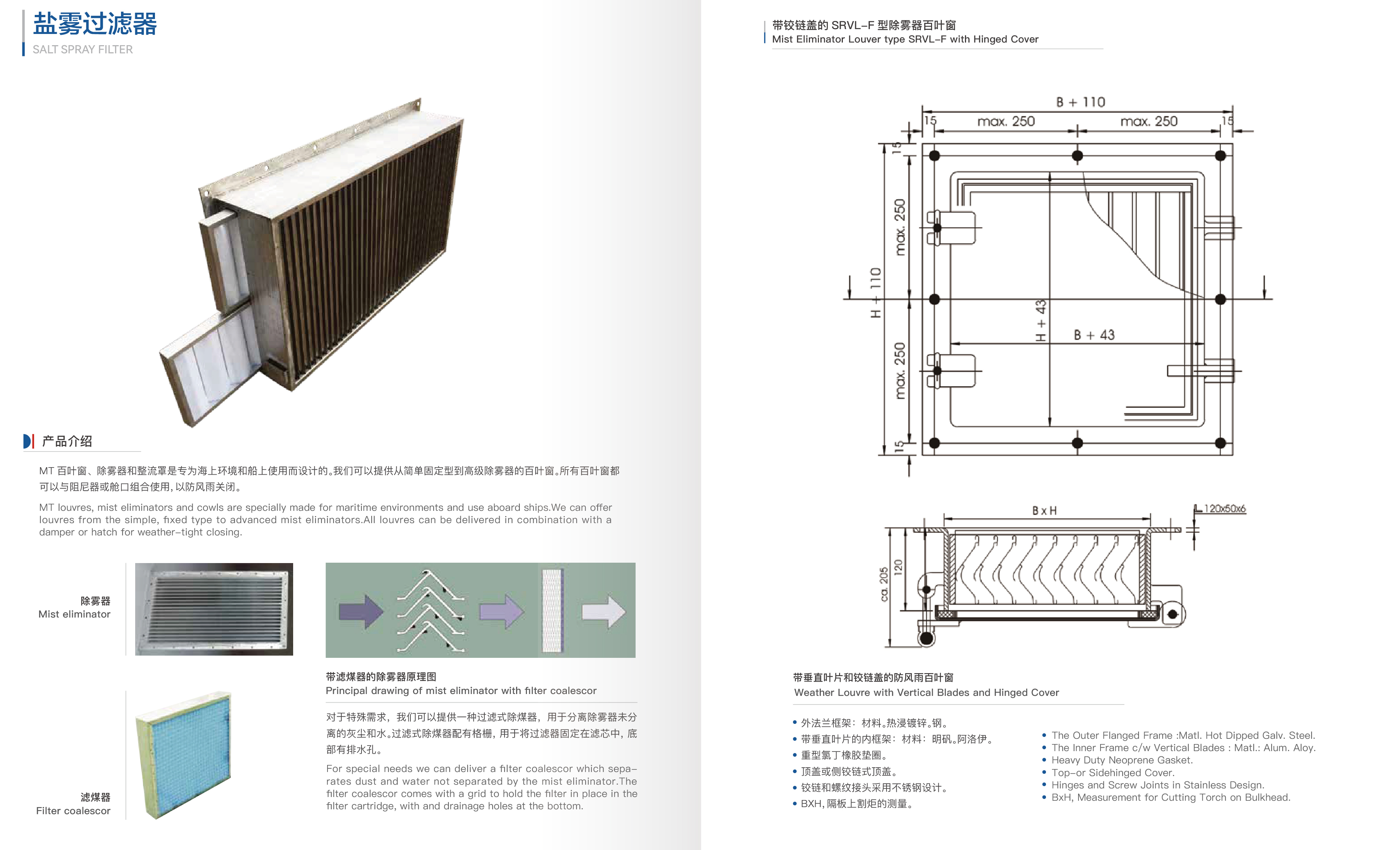 MT 百叶窗、除雾器和整流罩是专为海上环境和船上使用而设计的。我们可以提供从简单固定型到高级除雾器的百叶窗。所有百叶窗都