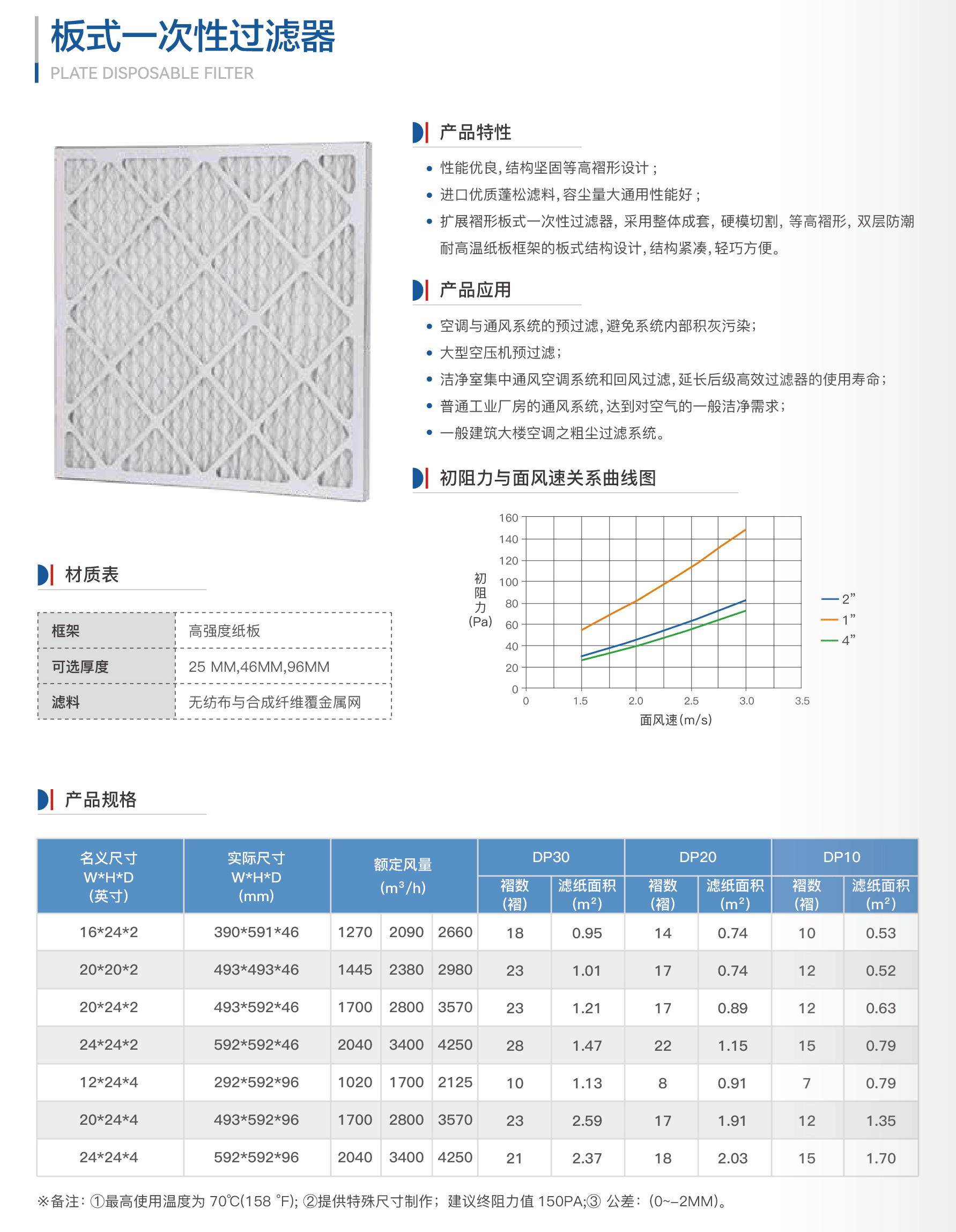扩展褶形板式一次性过滤器,采用整体成套,硬模切割,等高褶形,双层防潮